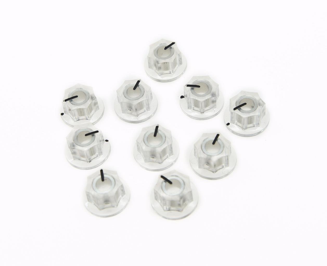 - In order to get correct knobs for your pots, please remove the current knobs from your guitar, count the splines on your pots, if they are 10 on each side, your pots will need 24 fine spines knobs; if they are 8 one each side, your pots will need 18 Coarse splines knobs; Please see our photos for reference