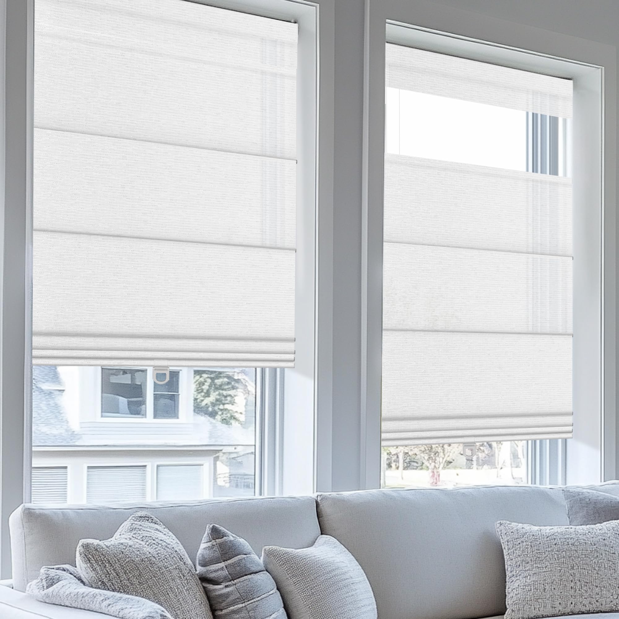 - 【BLACKOUT ROMAN BLINDS& SHADES】Made from 100% polyester, our blackout roman Blinds are handwoven using natural linen fabrics, layer them with curtains to enhance warmth and style while enjoying superior thermal insulated, noise cancellation&thermal efficiency. Our roman blinds effectively block outdoor heat during summer and retain indoor warmth in winter. With blackout fabric, they reduce heat loss through your windows by 27%. Ideal for the living room, door, kitchen, office or bedroom