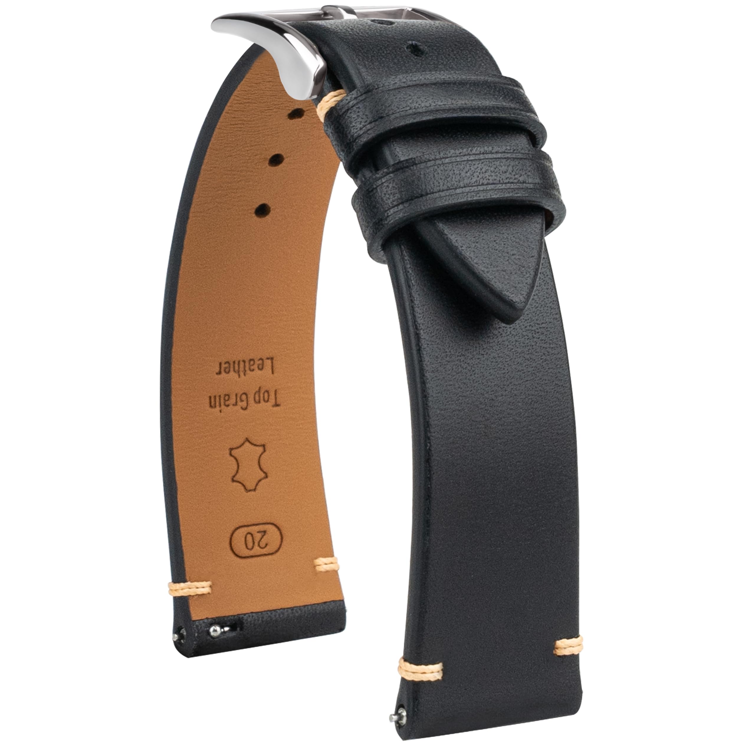 - 【Thick Durable Leather Watch Strap】Thick Premium Leather: Top-grain leather strap with reinforced stitching for superior durability and long-lasting performance.